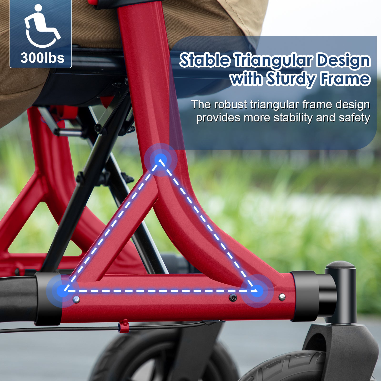 - 【Sturdy & Triangular Structure】MAXWALK rolling walker features a sturdy triangular aluminum structure. It only weighs 19.5lbs, supports up to 300lbs.